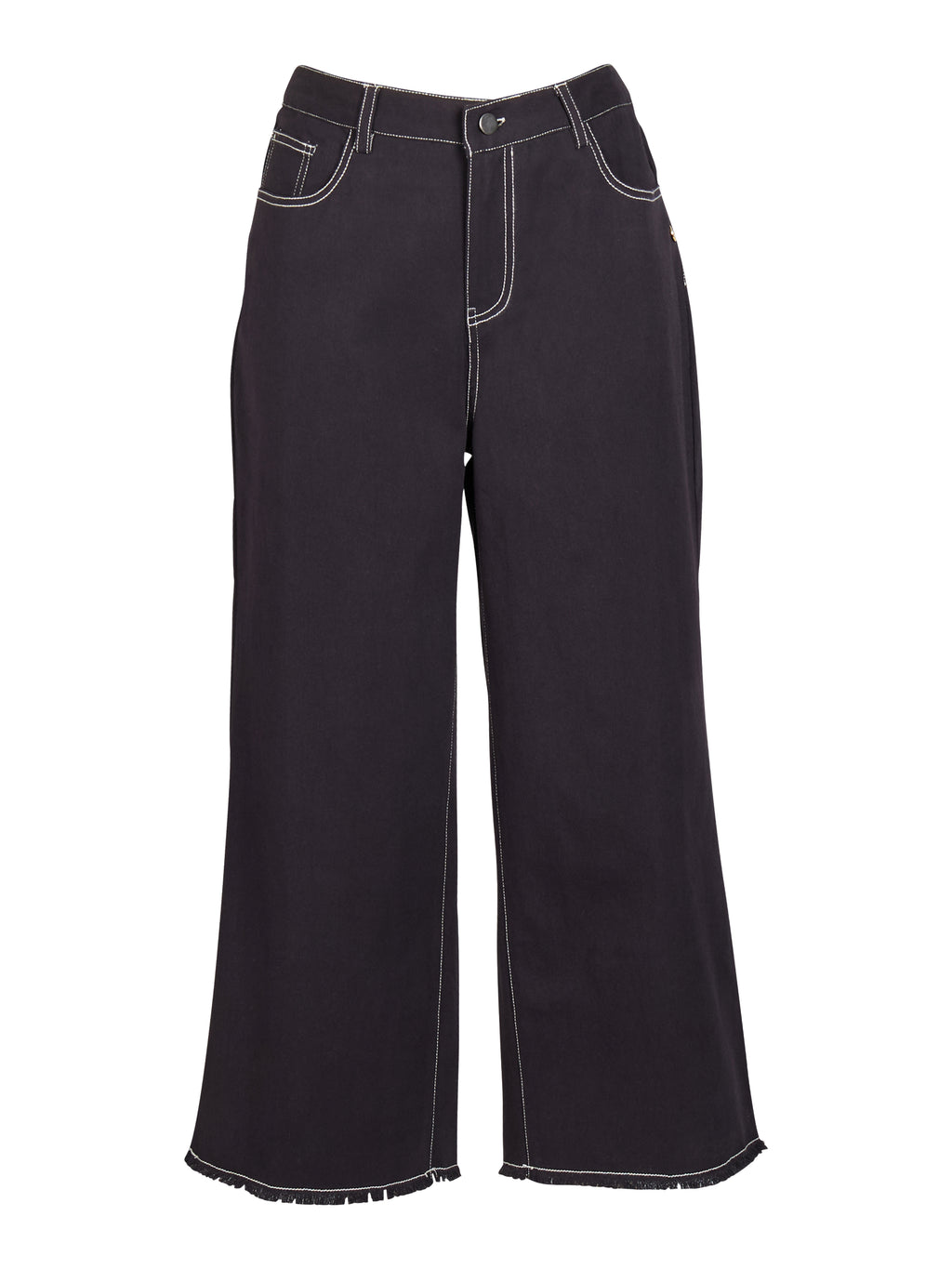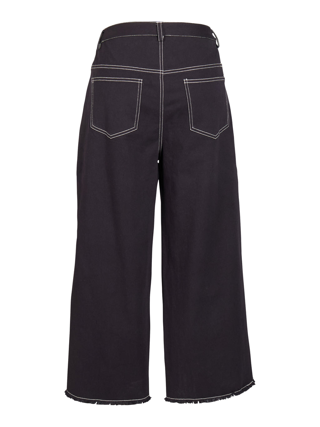Wide-leg denim jeans with a high waist, crafted from a super-stretchy fabric for exceptional comfort. Designed with classic front and back pockets as well as practical belt loops. The wide legs feature a cropped 7/8 length with raw-cut hems for a modern finish. Contrast cream stitching adds a stylish edge to the black denim.Stretchy fabricWide legsHigh waistRaw-cut hem7/8 length
