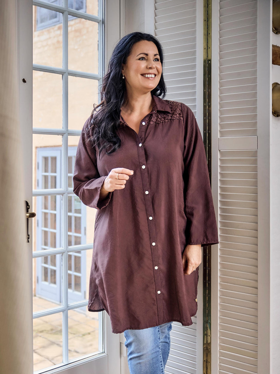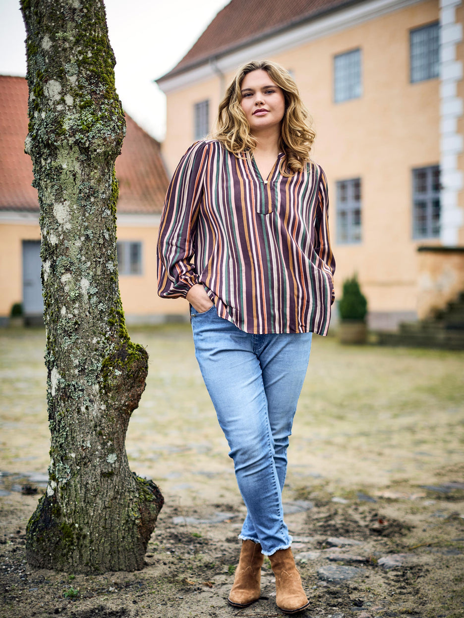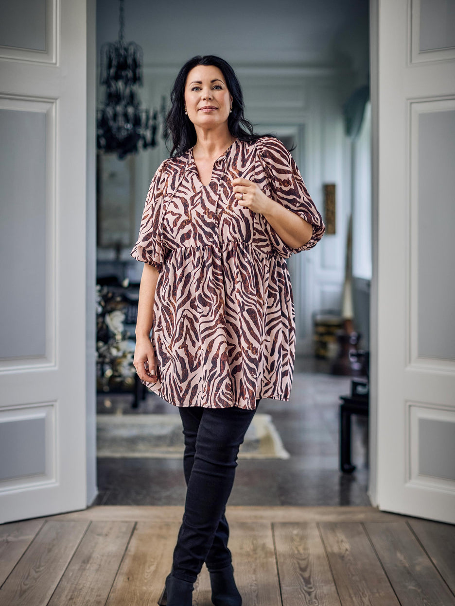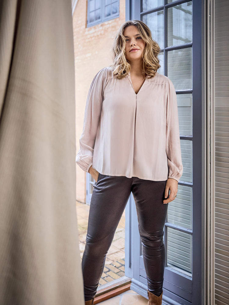 Nice t-shirt in an incredibly soft and stretchy quality. On the back, it has wiener pleats, which contribute to a relaxed and comfortable fit. The T-shirt has a v-neck, cap sleeves and a rounded bottom.